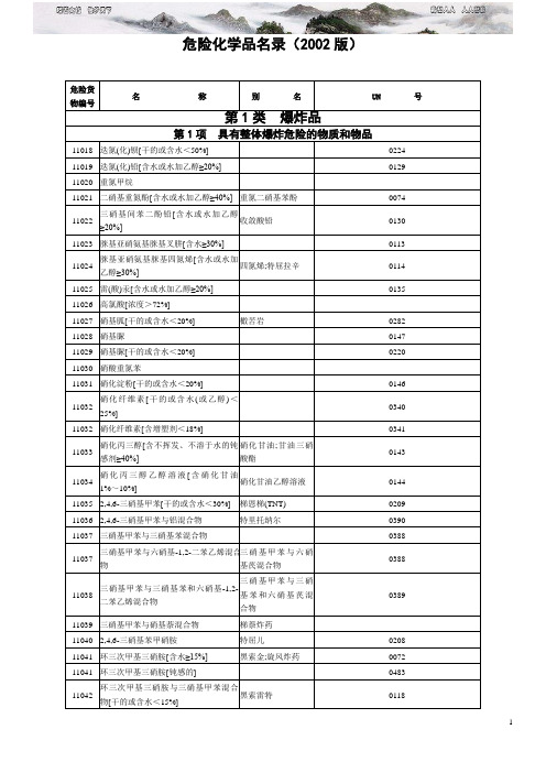 危化品目錄序號(hào)概述